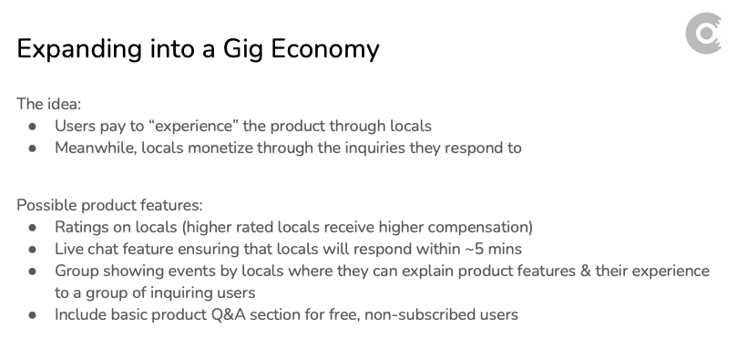 The CPO had an idea of expanding Experify's plugin into a gig economy, so I explored the idea by brainstorming possible ways the product could grow, making sure to align with current business goals.